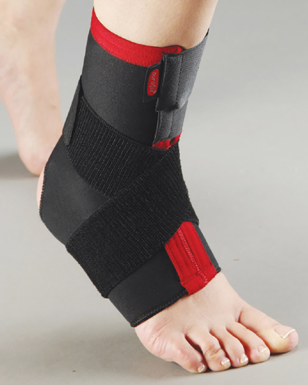 Neopren malzemeden üretilmiş olup, anatomik olarak tasarlanmıştır. Sekiz şeklinde sarılan elastik çapraz bant stabilizasyonu ve kompresyonu arttırır. Neopren malzeme vücut ısısını koruyarak kan dolaşımını dolayısıyla da iyileşme sürecini hızlandırır.