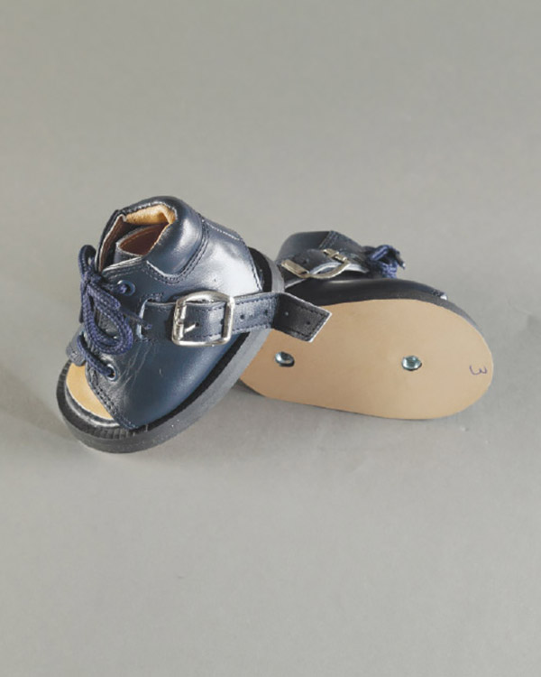 Alt kısmı kösele, üst kısmı deri olan çektirmeli, bağcıklı, ön parmak ucu ve topuk kısmı açık Denis Browne ateline monte edilebilir bottur.