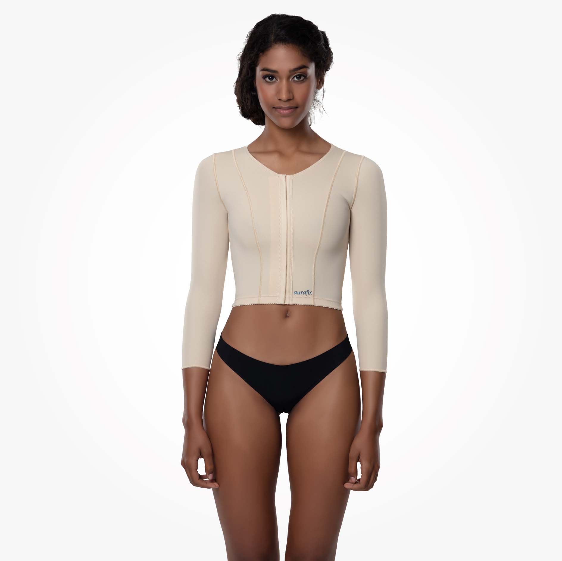 Omuz, meme, kol, arka, sırt ve vücudun üst bölgesini içine alan liposuction operasyonlarından sonra kullanılan önden ayarlanabilir 3 kademeli kopçalı, bileklere kadar uzanan kompresyon sağlayan yelektir.