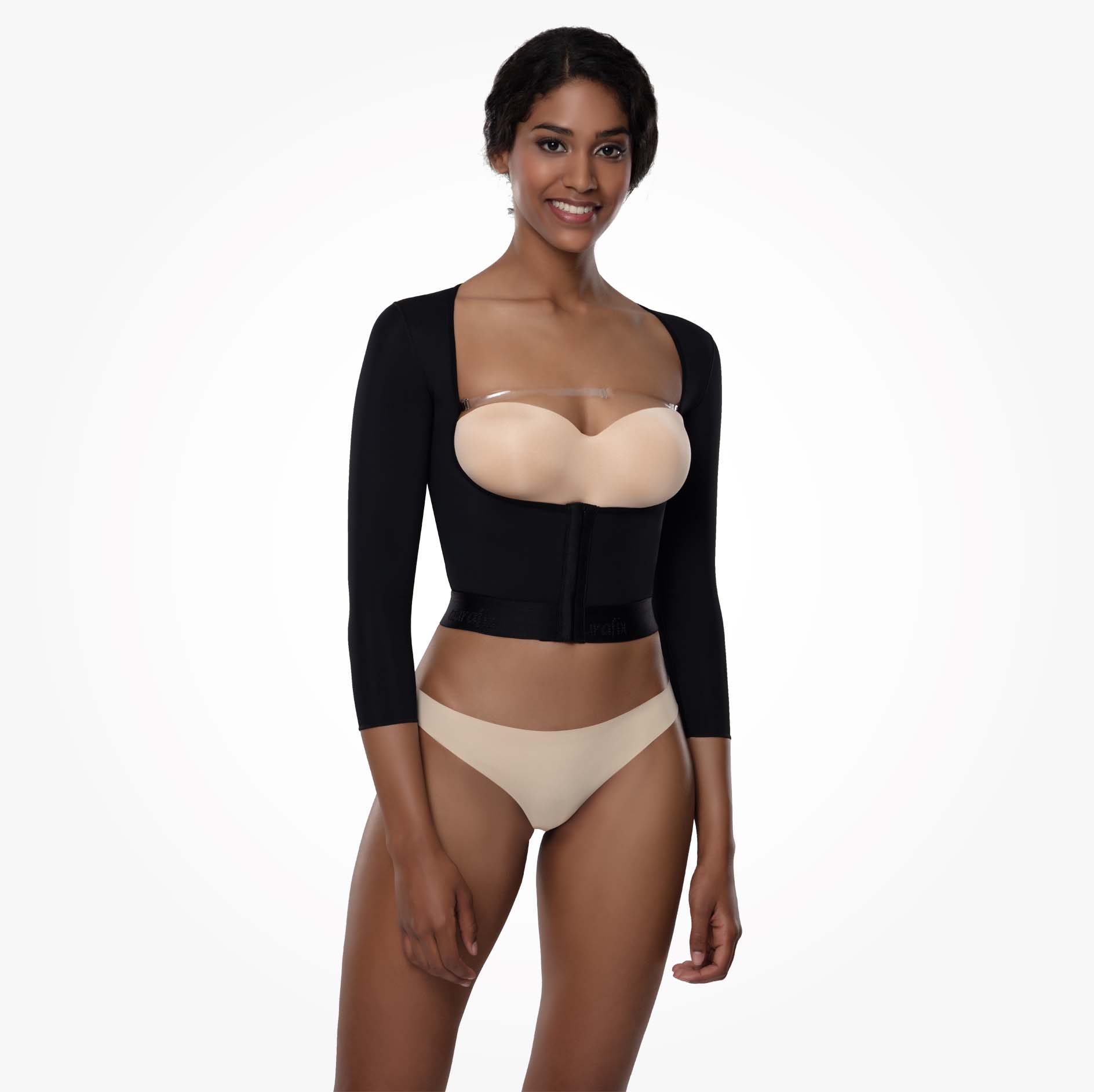 Omuz, kol ve sırt bölgesinde liposuction işlemlerinden hemen sonra kullanılan kompresyon giysisidir. Basınç etkisiyle kan dolaşımını hızlandırır. Tedavi süresi boyunca, kopçası ve şeffaf askısı sayesinde, ürünün sıkıştırma ayarının hastaya uygun şekilde yapılmasını sağlayarak doğru tedaviye yardımcı olur.